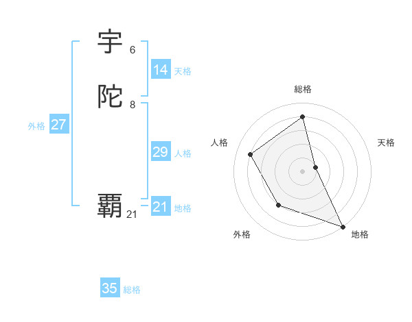 宇陀 覇さんの総格は35画の4点!