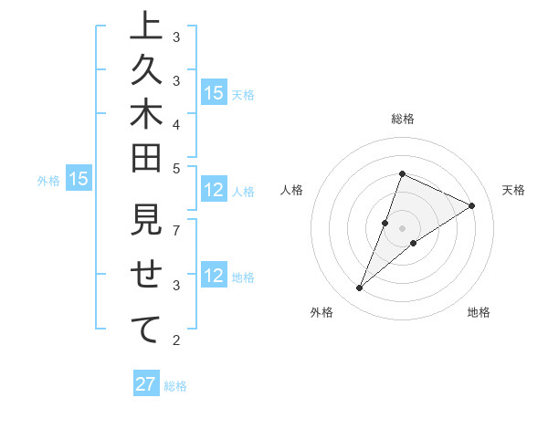 上久木田 見せてさんを姓名の画数から五運を鑑定