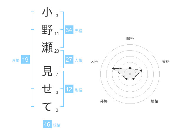 小野瀬 見せてさんを姓名の画数から五運を鑑定