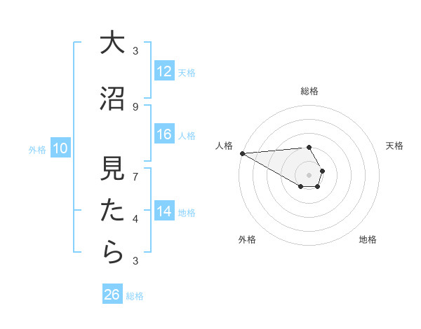 大沼 見たらさんの地格は14画の1点