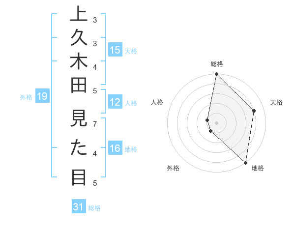 上久木田 見た目さんの総格は31画の5点!