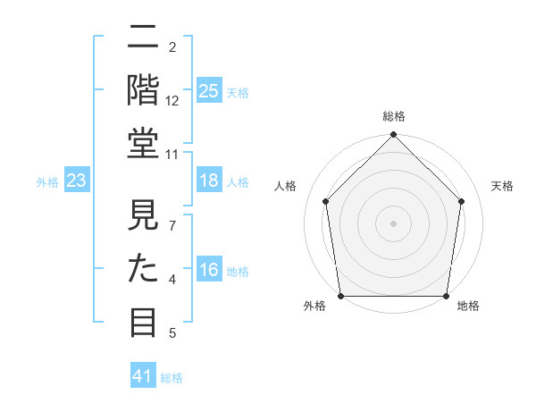 二階堂 見た目さんを姓名の画数から五運を鑑定