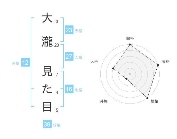 大瀧 見た目さんを姓名の画数から五運を鑑定