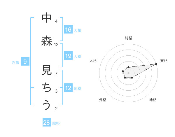 中森 見ちうさんを姓名の画数から五運を鑑定