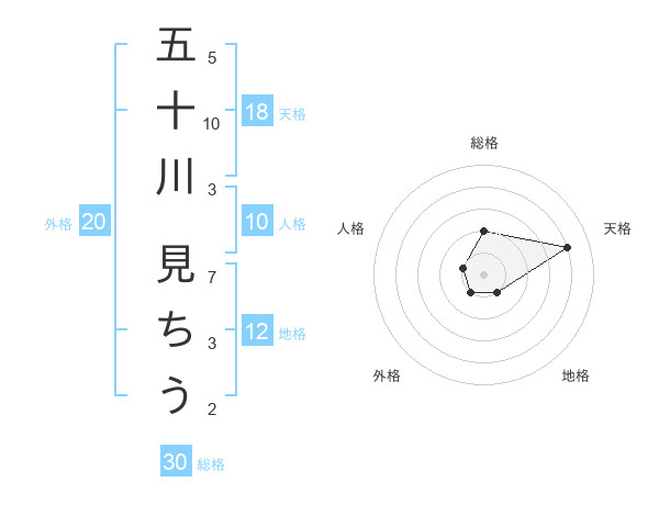 五十川 見ちうさんを姓名の画数から五運を鑑定