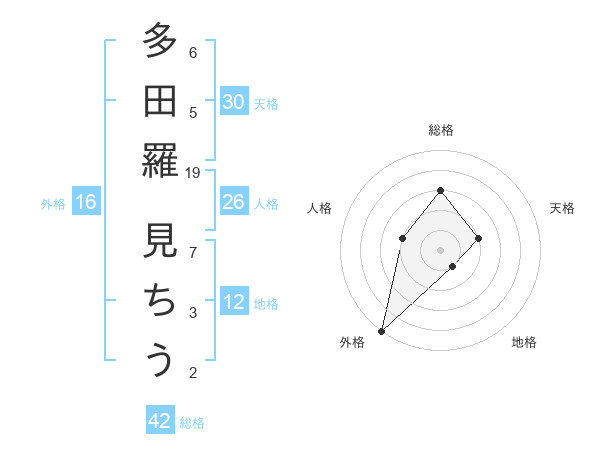 多田羅 見ちうさんを姓名の画数から五運を鑑定