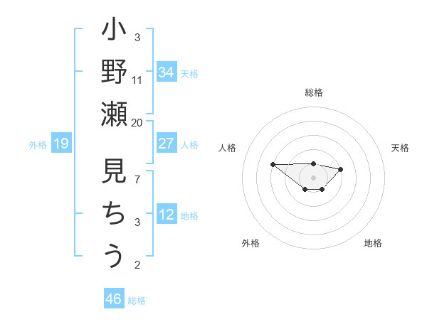 小野瀬 見ちうさんの総格は46画の1点!