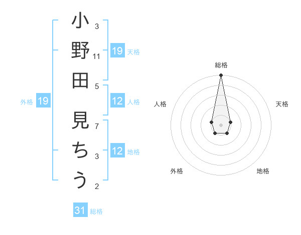 小野田 見ちうさんを姓名の画数から五運を鑑定