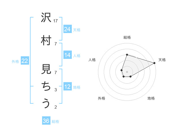 沢村 見ちうさんを姓名の画数から五運を鑑定