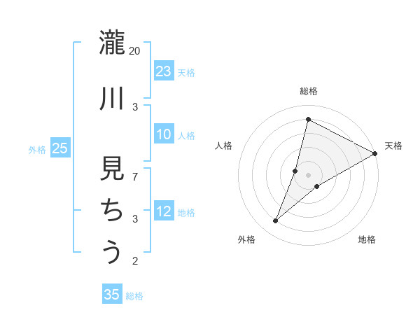 瀧川 見ちうさんを姓名の画数から五運を鑑定