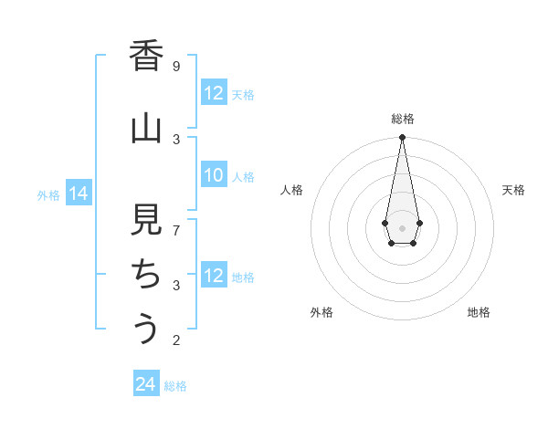香山 見ちうさんの天格は12画の1点!