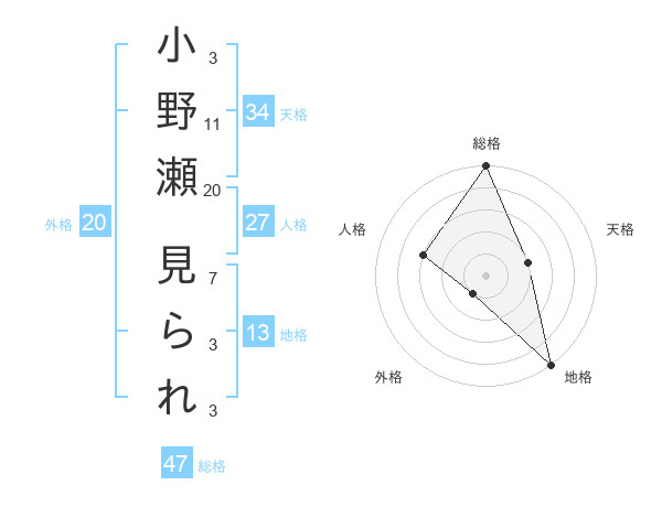 小野瀬 見られさんを姓名の画数から五運を鑑定