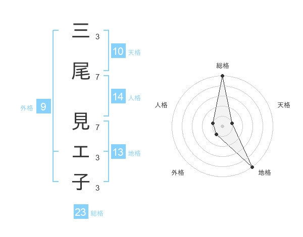 三尾 見エ子さんの総格は23画の5点!