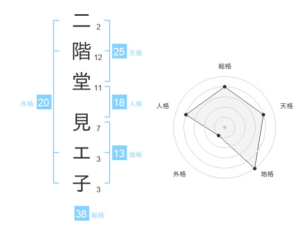 二階堂 見エ子さんの総格は38画の4点!