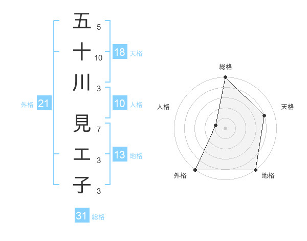 五十川 見エ子さんを姓名の画数から五運を鑑定