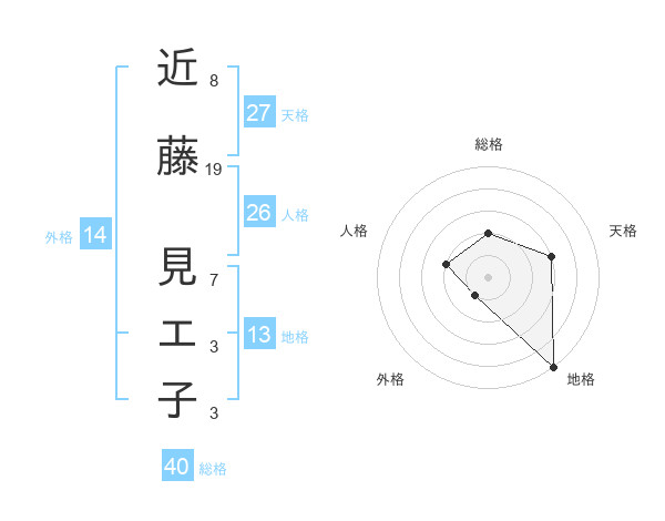 近藤 見エ子さんを姓名の画数から五運を鑑定