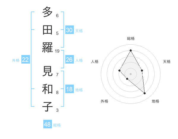 多田羅 見和子さんの天格は30画の2点!