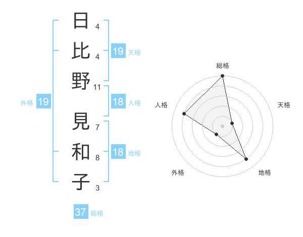 日比野 見和子さんを姓名の画数から五運を鑑定