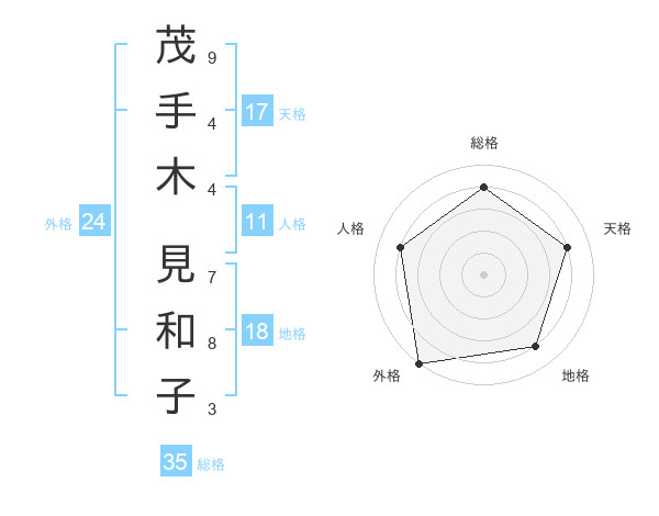 茂手木 見和子さんを姓名の画数から五運を鑑定