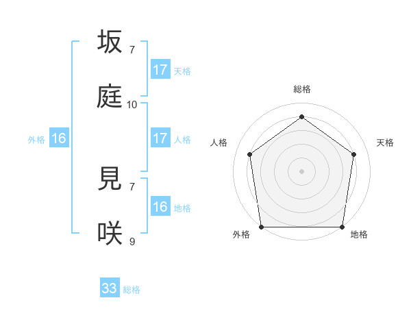 坂庭 見咲さんを姓名の画数から五運を鑑定