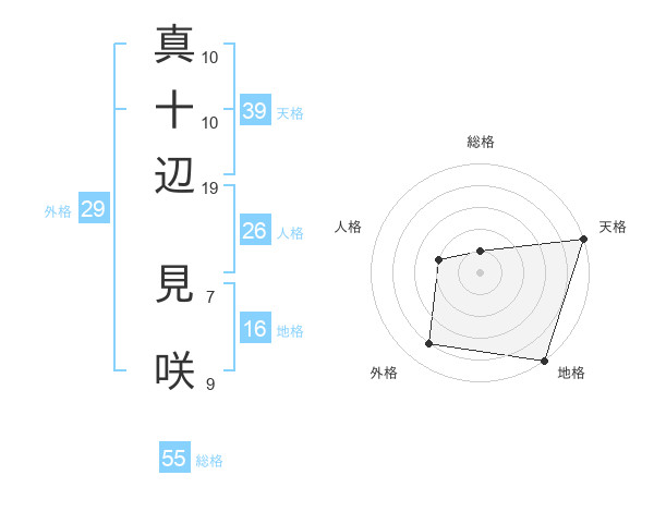 真十辺 見咲さんの総格は55画の1点!
