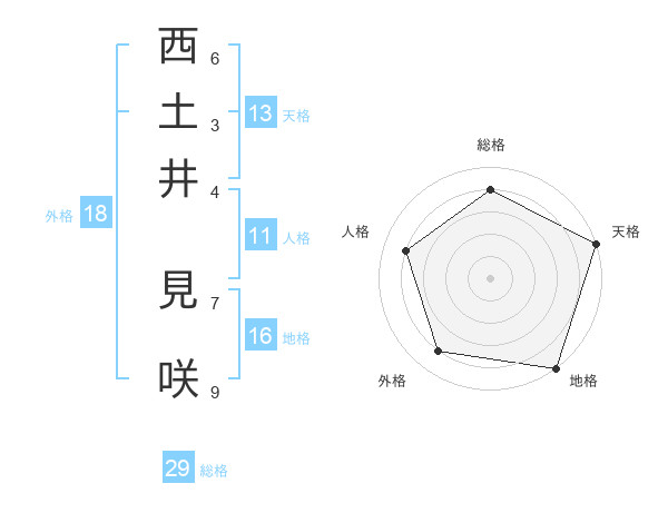 西土井 見咲さんを姓名の画数から五運を鑑定