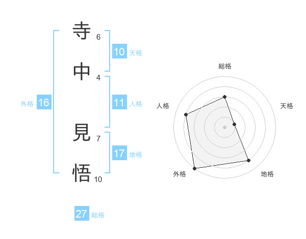 寺中 見悟さんを姓名の画数から五運を鑑定
