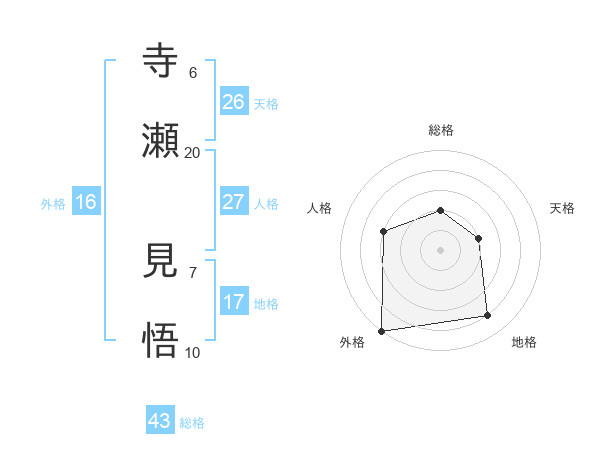 寺瀬 見悟さんの総格は43画の2点!