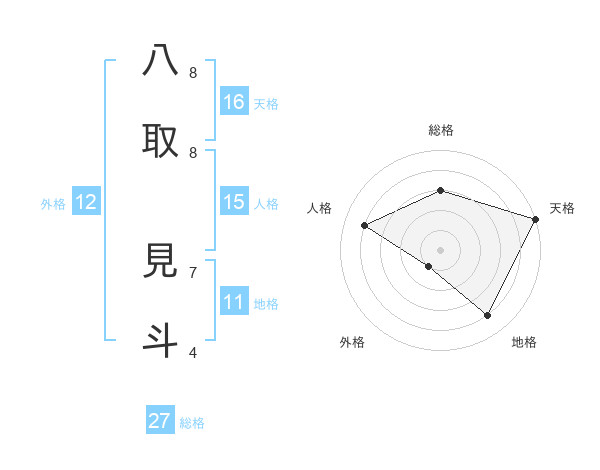 八取 見斗さんの天格は16画の5点!