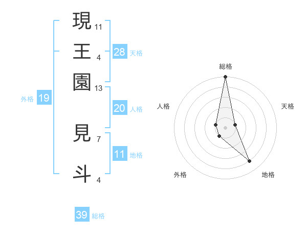 現王園 見斗さんを姓名の画数から五運を鑑定