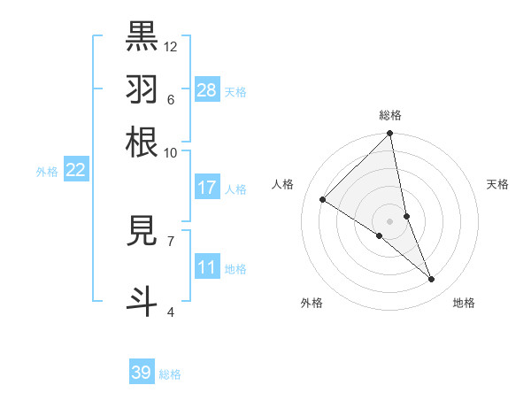 黒羽根 見斗さんの総格は39画の5点