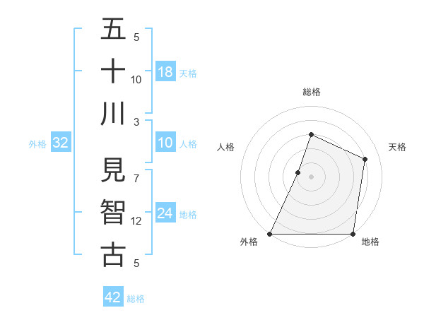 五十川 見智古さんを姓名の画数から五運を鑑定