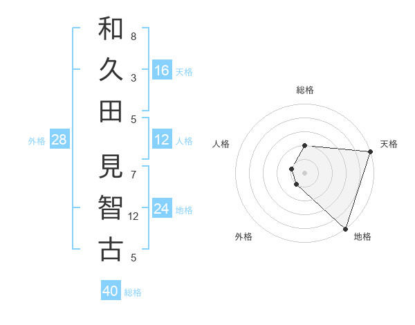和久田 見智古さんを姓名の画数から五運を鑑定