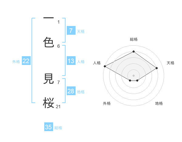 占い結果は姓名判断である以上、良い場合も悪い場合もありますが、決してお名前を誹謗中傷するものでなく、画数の自動計算によって得られたものです。また、本サイトの検索によって得られた鑑定結果で、第三者を誹謗中傷したり名誉を棄損するような行為を禁じます。