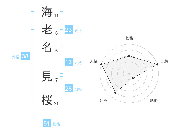 海老名 見桜さんの総格は51画の3点!