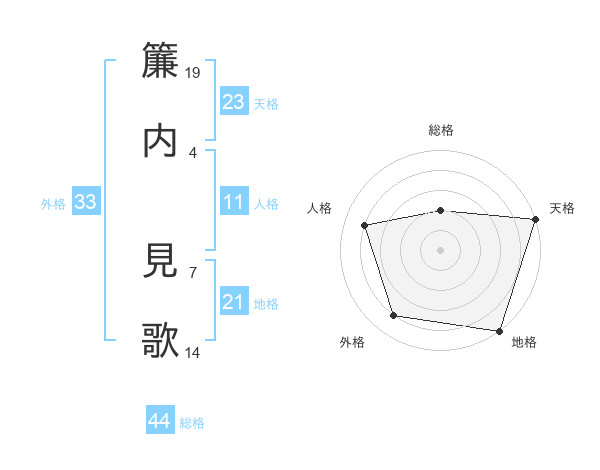 簾内 見歌さんの総格は44画の2点!