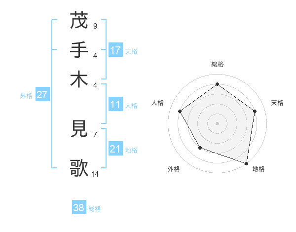 茂手木 見歌さんを姓名の画数から五運を鑑定