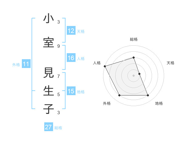 小室 見生子さんの外格は11画の4点!