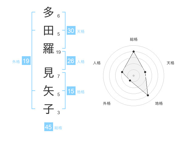 多田羅 見矢子さんの総格は45画の4点!