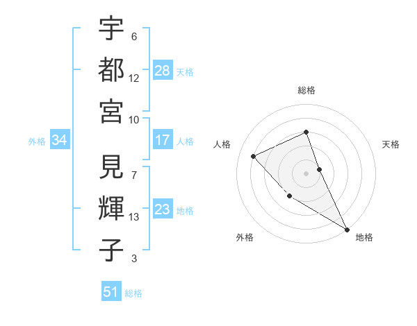 宇都宮 見輝子さんを姓名の画数から五運を鑑定