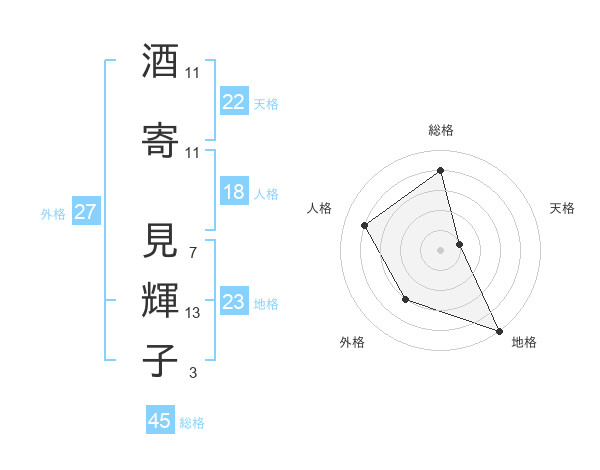酒寄 見輝子さんを姓名の画数から五運を鑑定