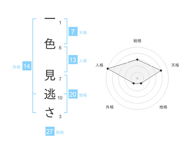 一色 見逃ささんを姓名の画数から五運を鑑定