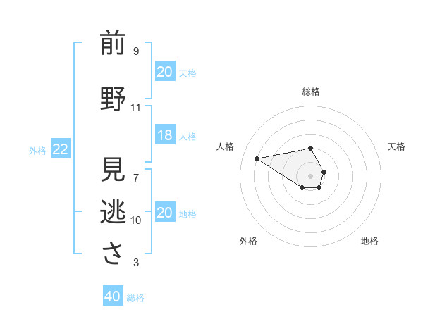 前野 見逃ささんを姓名の画数から五運を鑑定