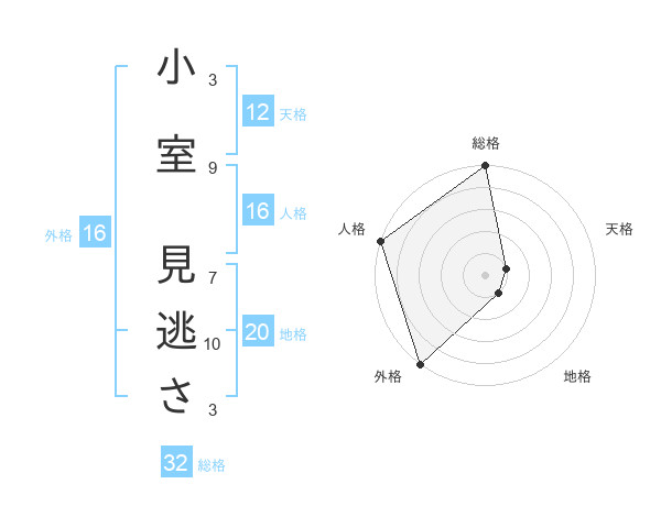 小室 見逃ささんを姓名の画数から五運を鑑定