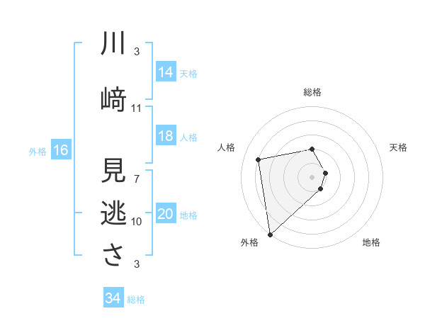 川﨑 見逃ささんを姓名の画数から五運を鑑定