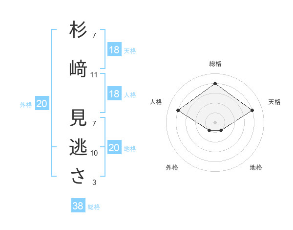 杉﨑 見逃ささんの総格は38画の4点!