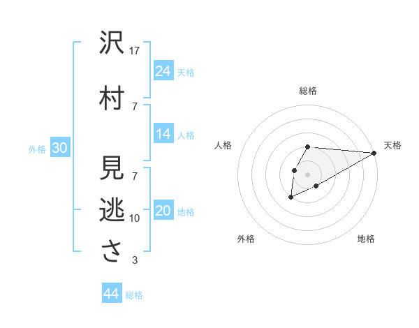 沢村 見逃ささんを姓名の画数から五運を鑑定