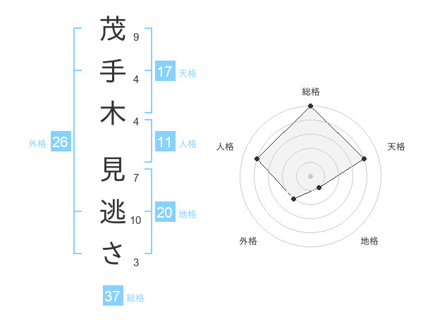 茂手木 見逃ささんを姓名の画数から五運を鑑定