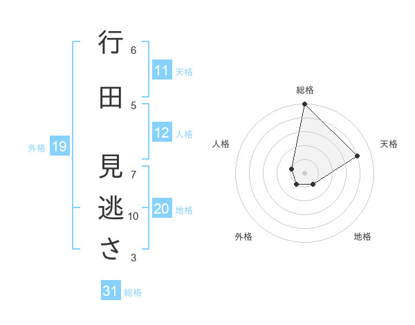 行田 見逃ささんの総格は31画の5点!