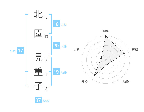 北園 見重子さんの総格は37画の5点!